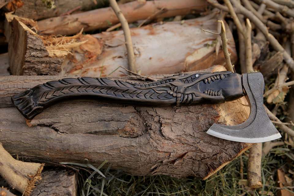 Hache viking artisanale en acier à haute teneur en carbone, gaine en cuir de qualité industrielle, manche en bois naturel, 1,5 kg, camping, quotidien, extérieur