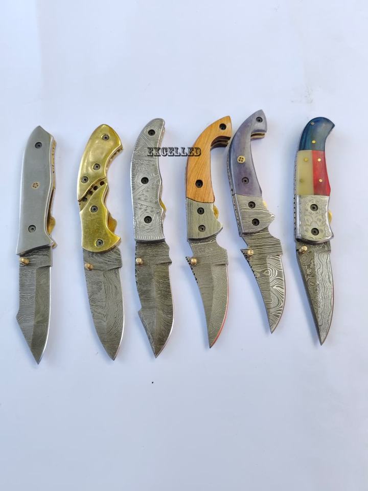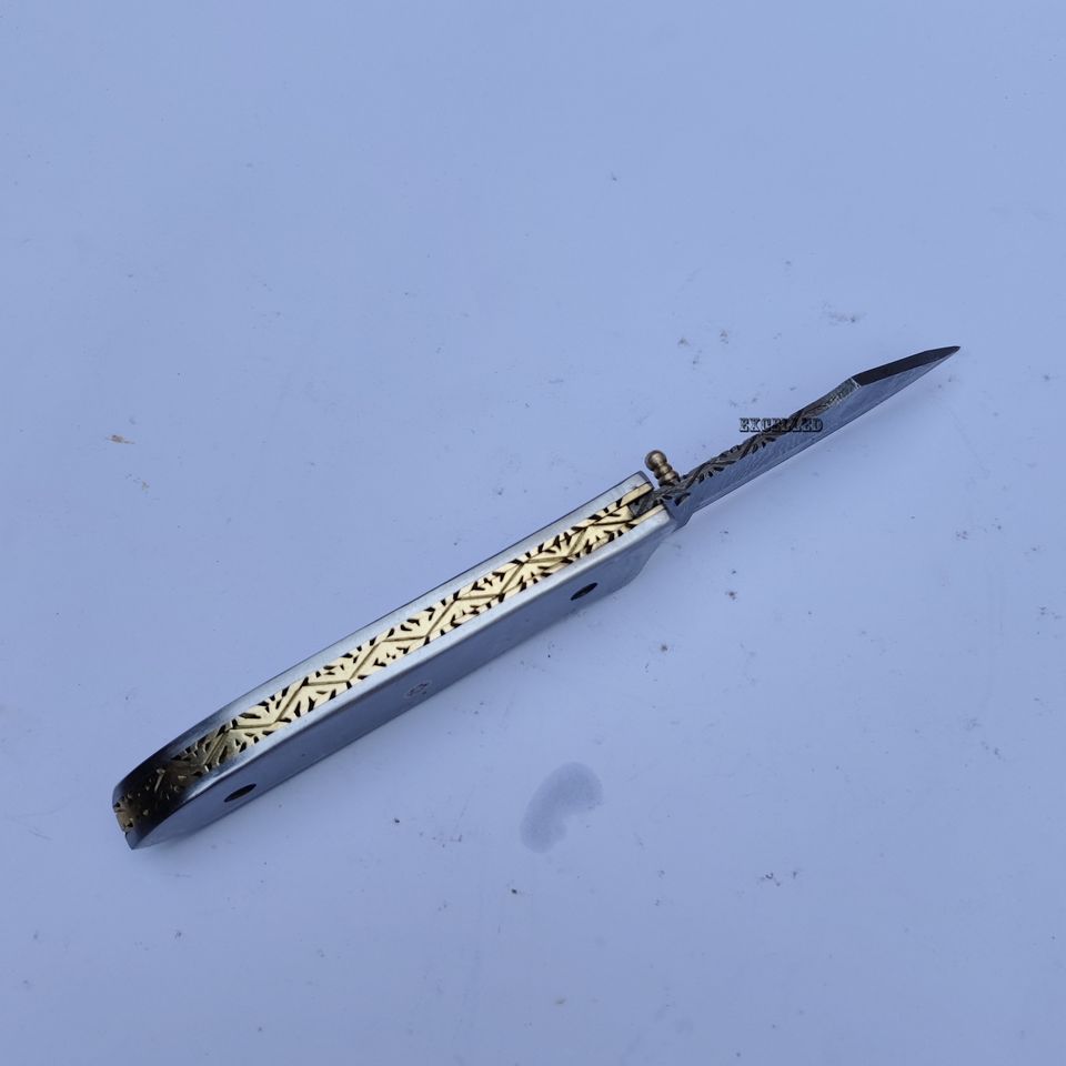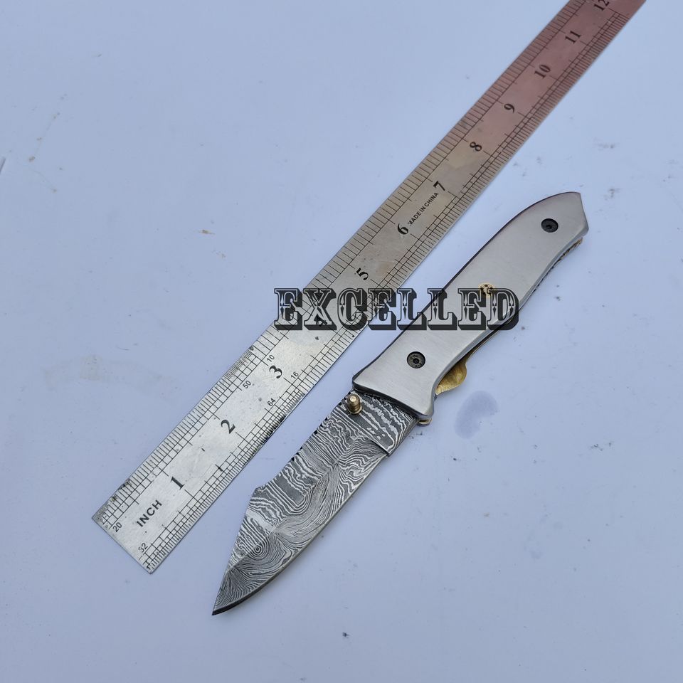 Couteau pliant artisanal de haute qualité en acier Damas avec poignée en acier, couteau de survie, couteau utilitaire de poche pour l'extérieur