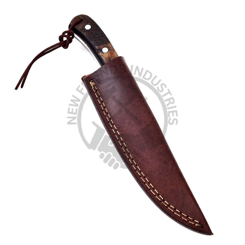 Couteau de chasse en acier Damas de haute qualité, fait main, à lame pleine, avec manche en corne de bélier, couteau multifonctionnel pour le camping en plein air