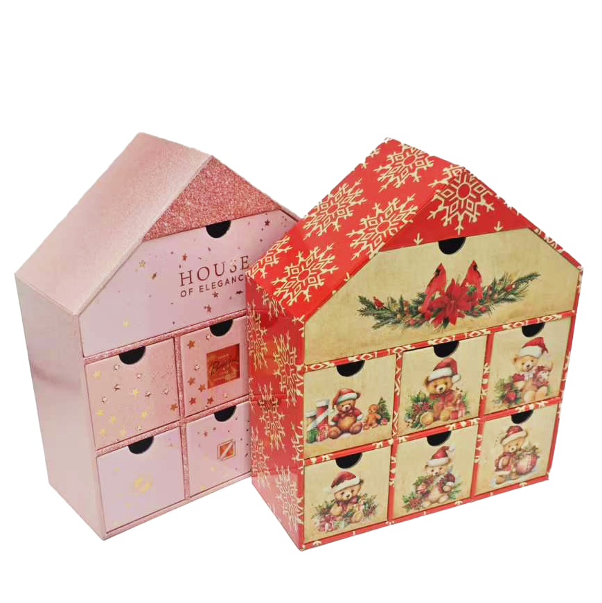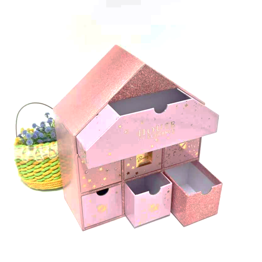 Boîte cadeau de stockage de bijoux en forme de maison faite à la main sur mesure 7 jours avec calendrier de l'avent fabriquée en usine pour la stratification Little Matt