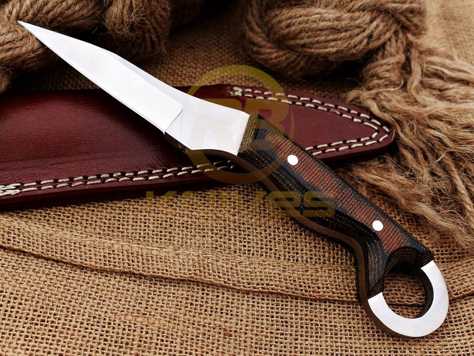 Couteau de chasse et de camping artisanal en acier carbone, lame fixe avec manche en Micarta et étui, manche pleine longueur, survie en extérieur, OEM