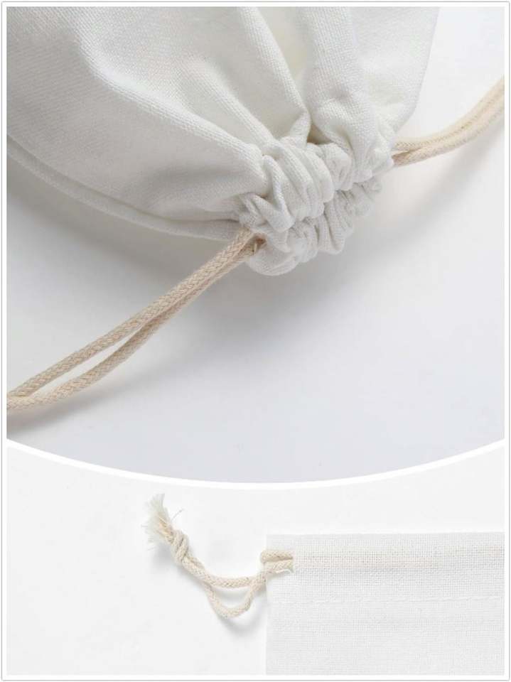 Sac en tissu de coton mousseline réutilisable avec cordon de serrage, idéal pour ranger les bijoux faits main, les bracelets, ou comme emballage cadeau pour les fêtes.