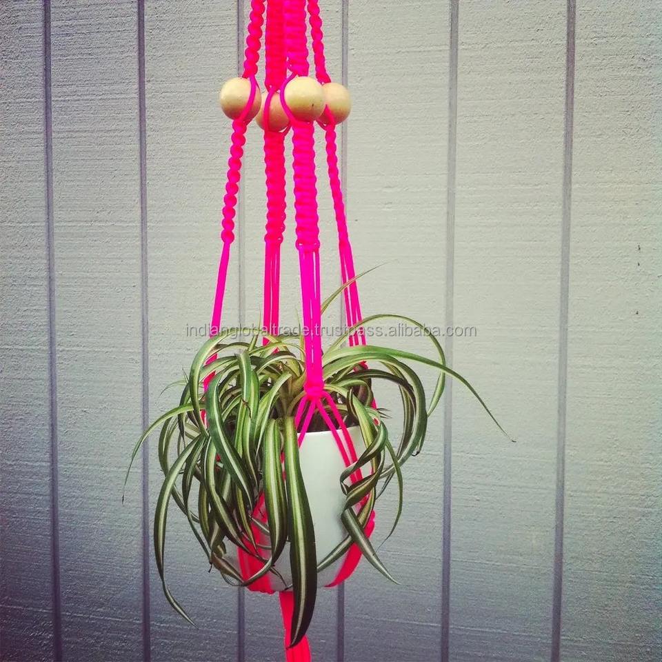 Cintre pour plantes en macramé fait à la main avec des perles élégantes tenture murale tissée pour Boho Home Decor Pot de fleur support de jardinière