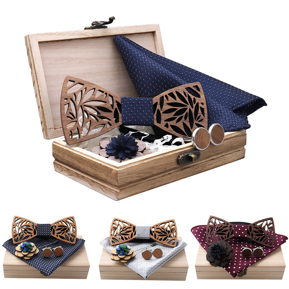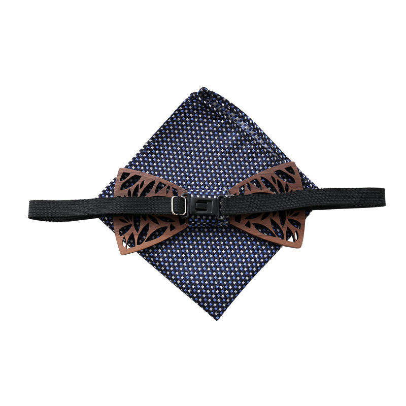 Nœud papillon en bois/mouchoir/boutons de manchetteModèle