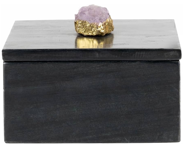 Boîte en marbre artisanale, design original, avec poignée en marbre noir et cristal, pour bracelets, pendentifs et bijoux.
