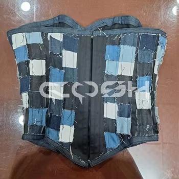 Top corset en denim patchwork fait main sur mesure