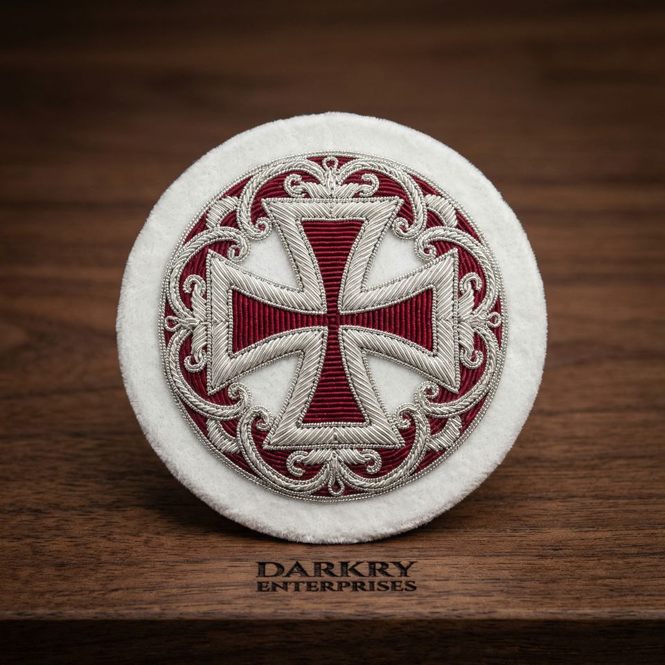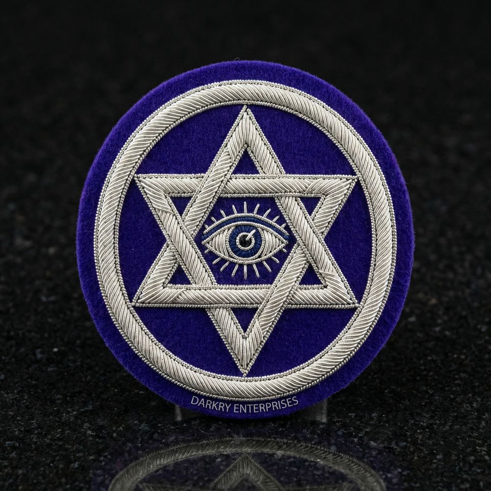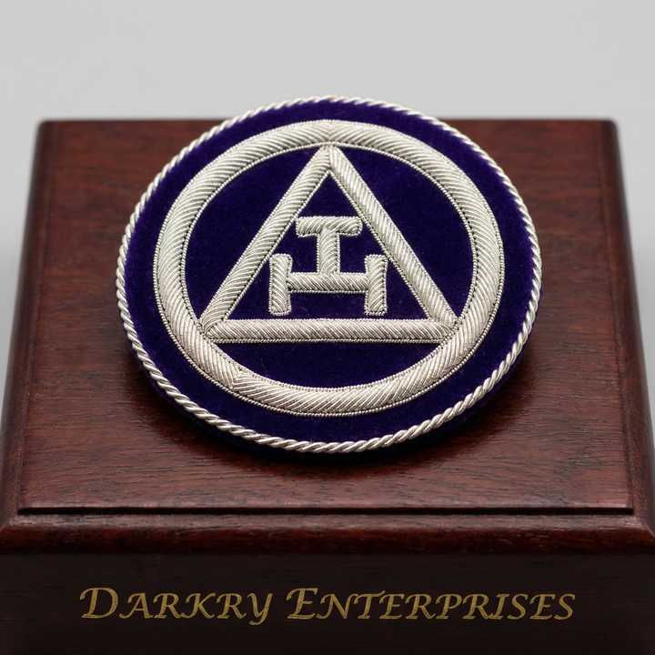 Écusson rond personnalisé fait main en fil d'argent brodé, emblème maçonnique Royal Arch, en velours violet, pour la franc-maçonnerie