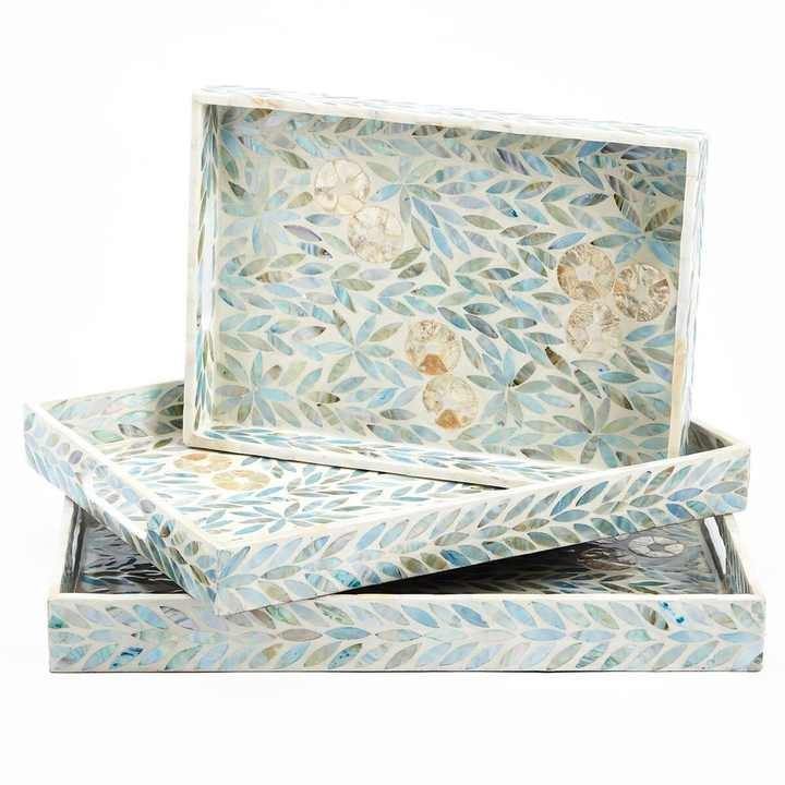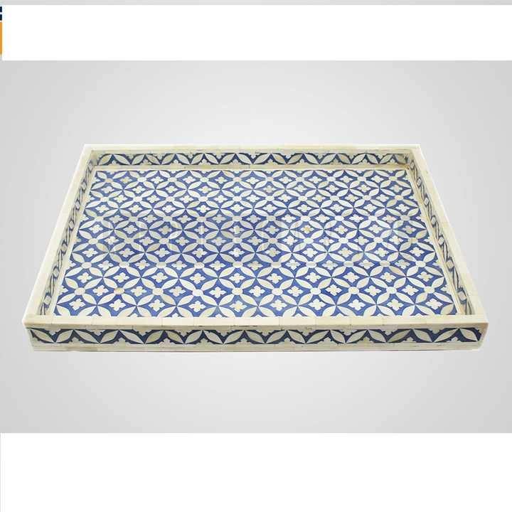 Plateau de service durable fait main personnalisé avec incrustation d'os coloré