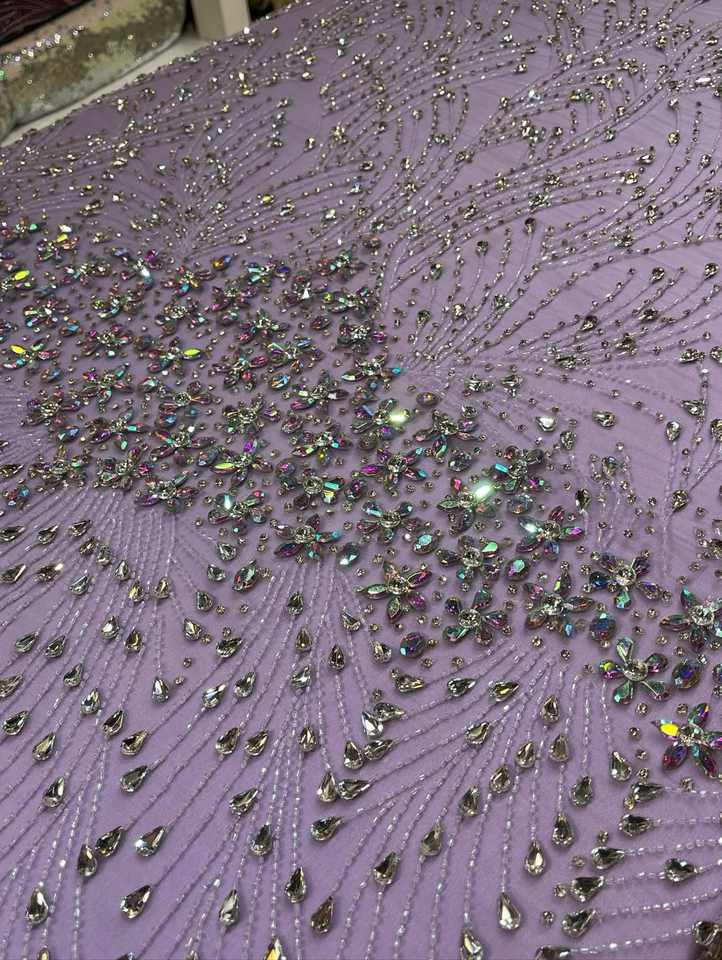 Tissu en dentelle perlée de zircon fait main sur mesure, 100 % polyester, tissu brodé en maille pour robe de mariée, robe de soirée, couture