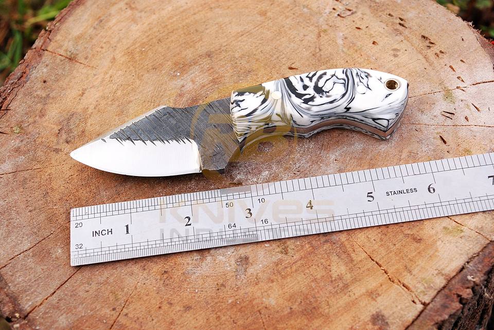 Couteau de chasse artisanal en acier carbone avec manche en résine, lame fixe, couteau de camping extérieur, options DIY et OEM, étui en cuir