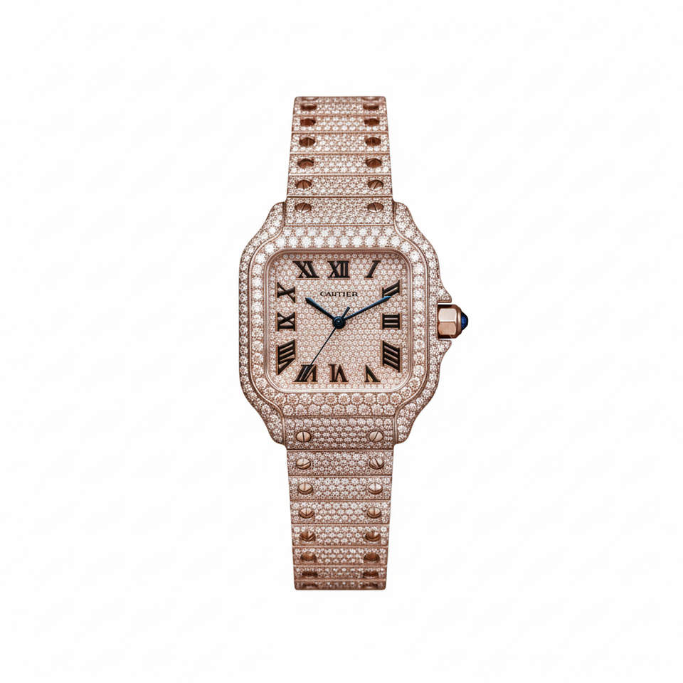 Montre-bracelet pour homme entièrement personnalisée, fabriquée à la main, entièrement sertie de diamants en moissanite VVS, cadran blanc, mécanique