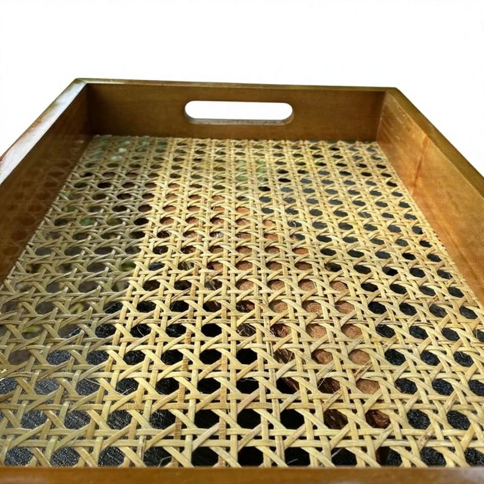 plateau en rotin et bois
