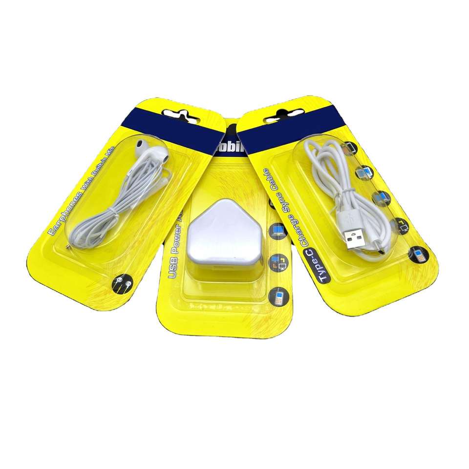 Boîte d'emballage de vente au détail suspendue personnalisée avec fenêtre transparente en PVC pour câble de données USB, chargeur et écouteurs