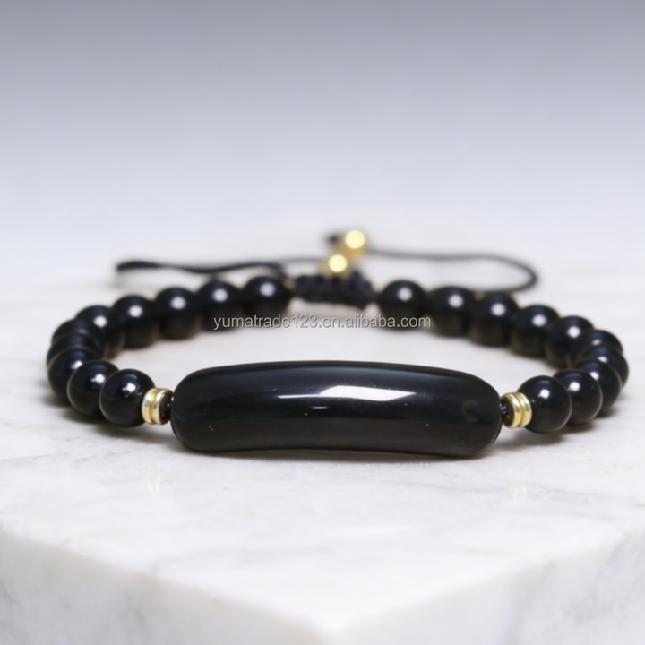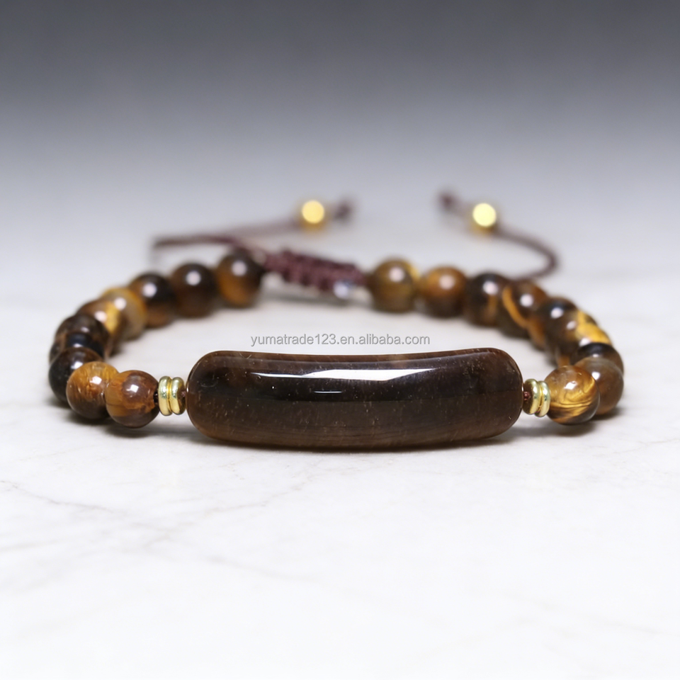 Bracelet en pierres naturelles personnalisé, agate noire, œil de tigre, améthyste, bracelet artisanal porte-bonheur, bijoux énergétiques, cadeau unisexe