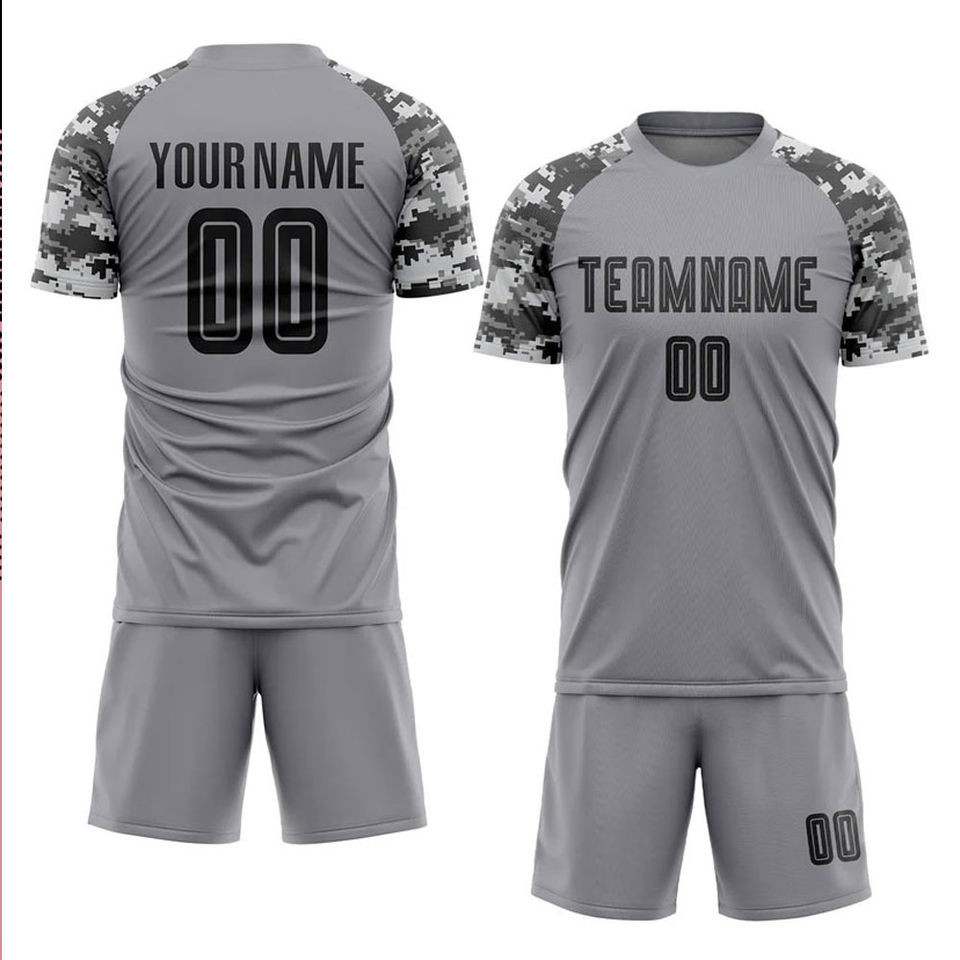 Maillot de football/soccer unisexe pour adultes en polyester 100% imprimé par transfert thermique personnalisé, col rond extensible, manches courtes, nom d'équipe personnalisé