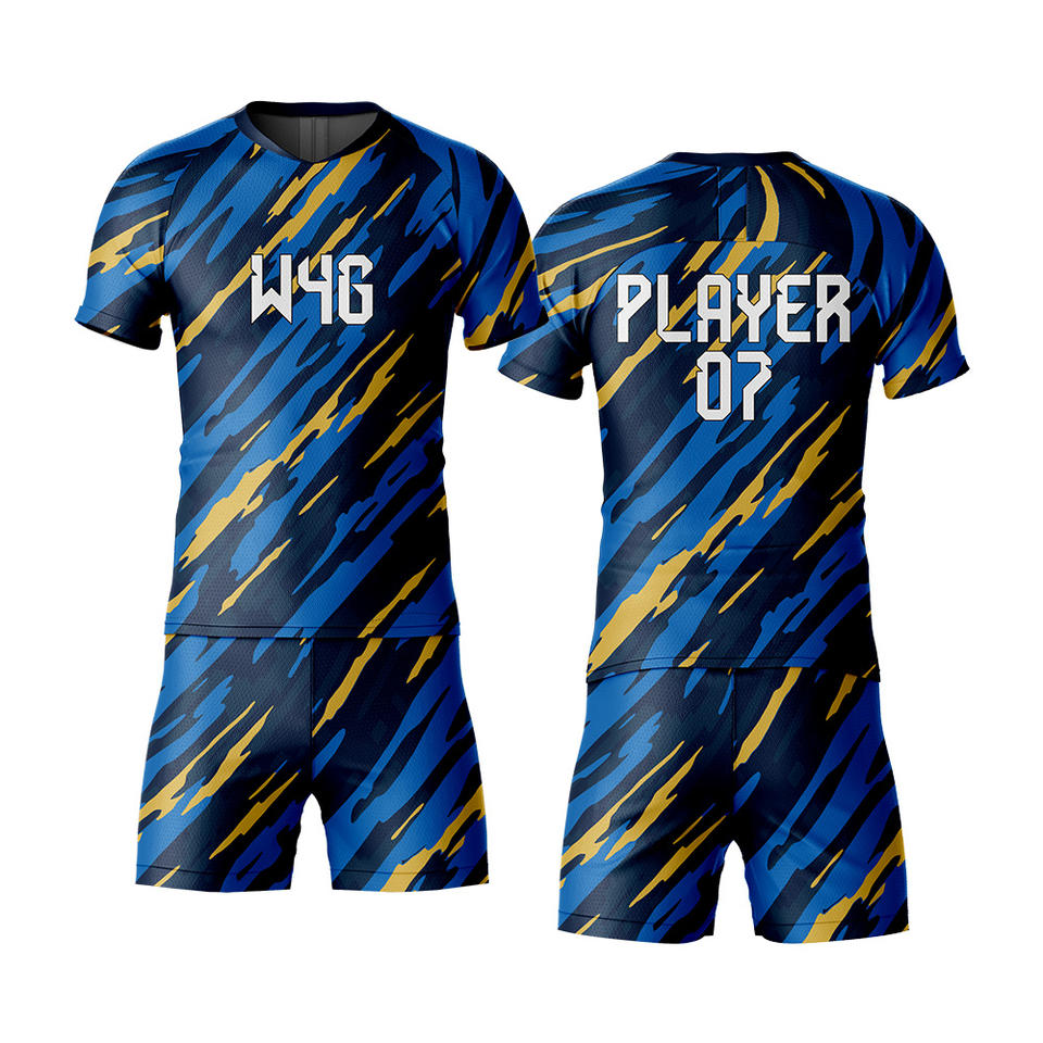 Tenues de football personnalisées pour hommes, imprimées par transfert thermique, respectueuses de l'environnement, 100% polyester respirant, ensemble maillot et short