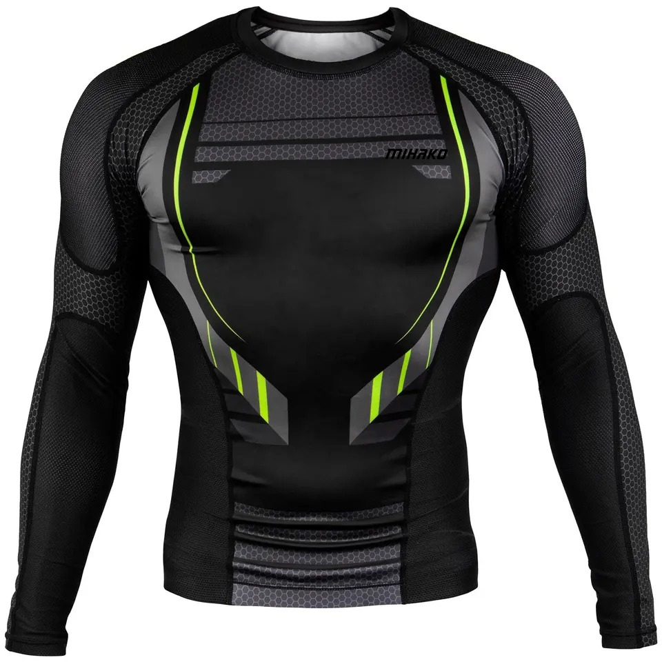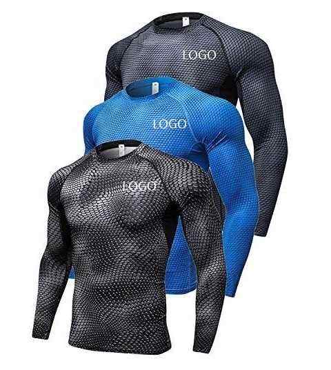 Impression par transfert thermique personnalisée UPF50+ Respirant Écologique Antibactérien Rashguard à manches longues pour homme Séchage rapide Compression