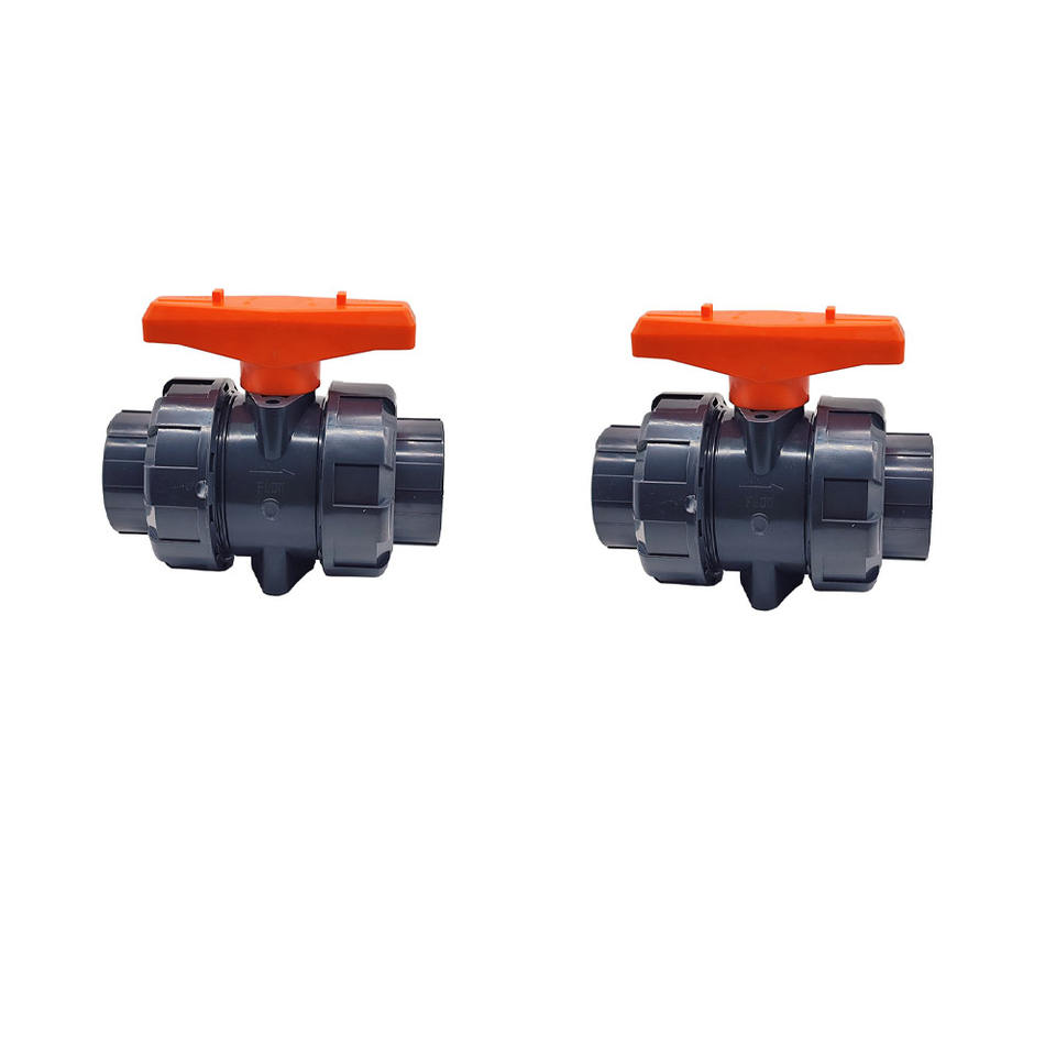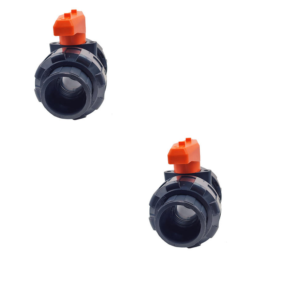 Vanne à boisseau sphérique en PVC à usage intensif personnalisée avec extrémités union, résistante aux produits chimiques, pour systèmes acides/solvants/eaux usées.