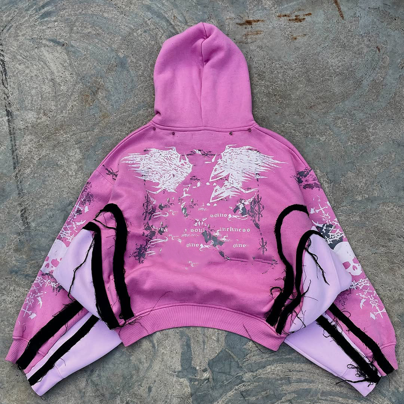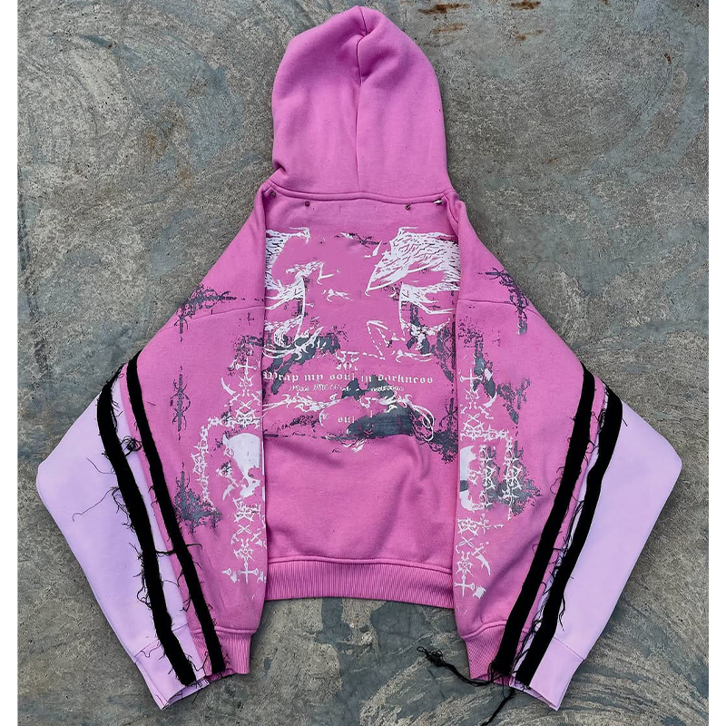 Sweat à capuche oversize à fermeture éclair avec patch brodé, en molleton français délavé à l'acide, style streetwear, poids lourd, personnalisé