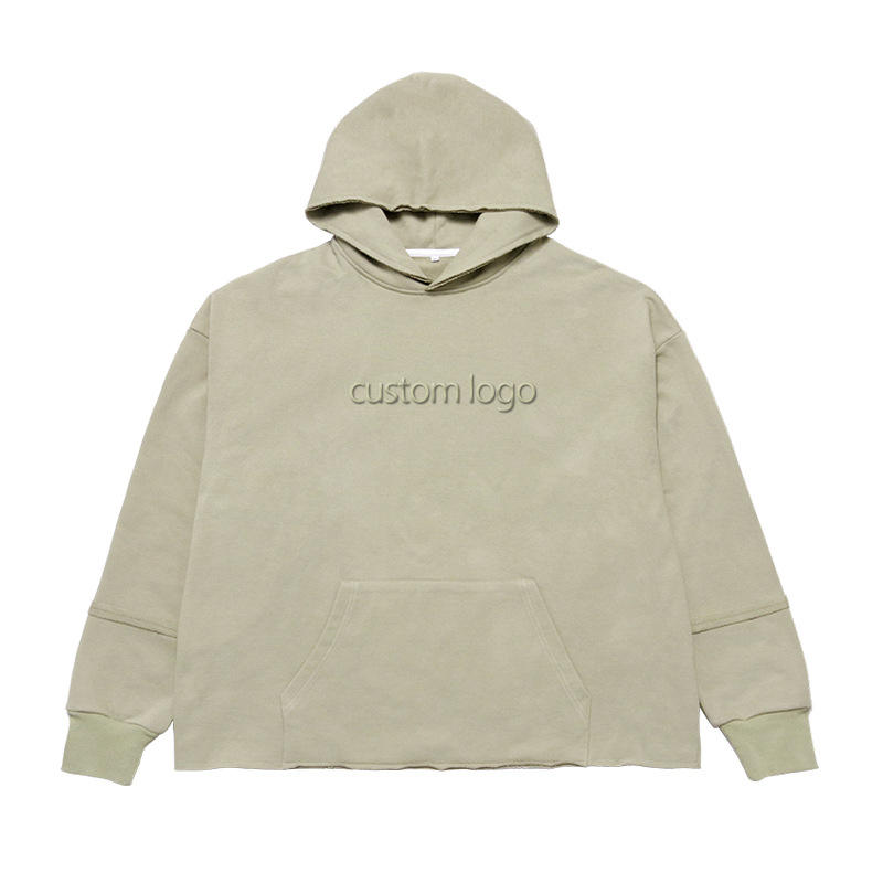 Sweat-shirt personnalisé en coton épais grande taille pour hommes sweat à capuche imprimé surdimensionné ourlet brut pull bord coupé hiver tissu français