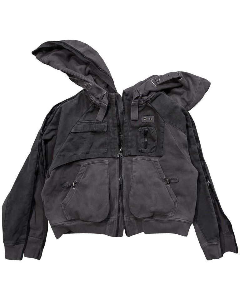 Vêtements de travail courts rétro personnalisés, patchwork lavé à fermeture éclair complète, style de rue surdimensionné, Hip Hop pour hommes