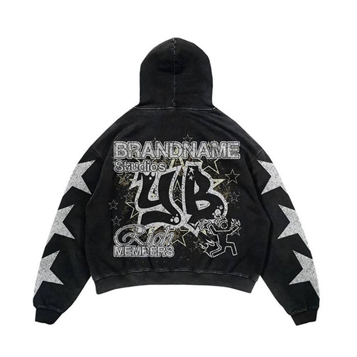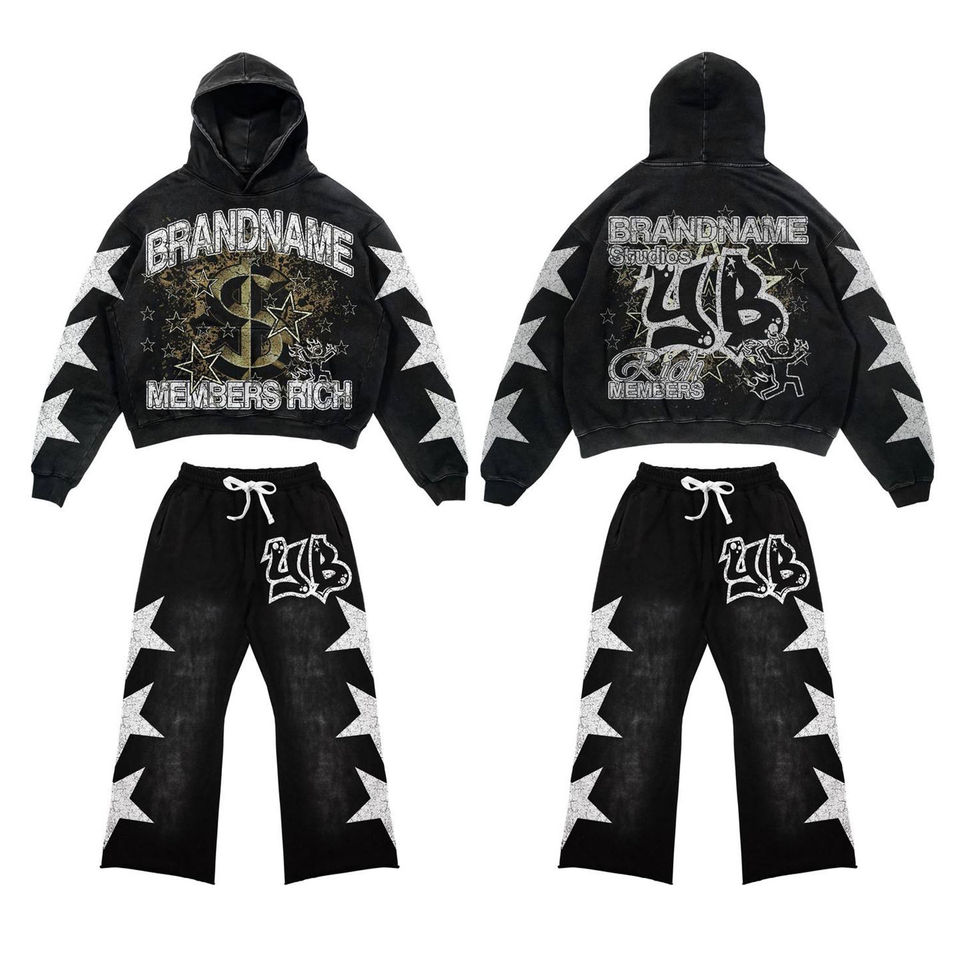 Pantalon de survêtement et sweat à capuche avec fermeture éclair sur toute la surface personnalisé poids lourd grande taille imprimé strass design évasé