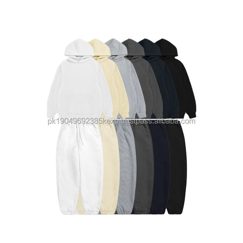 Sweat-shirt à capuche à manches raglan en polaire polaire lourd personnalisé Ensembles de sweats à capuche et de pantalons de survêtement de couleur unie