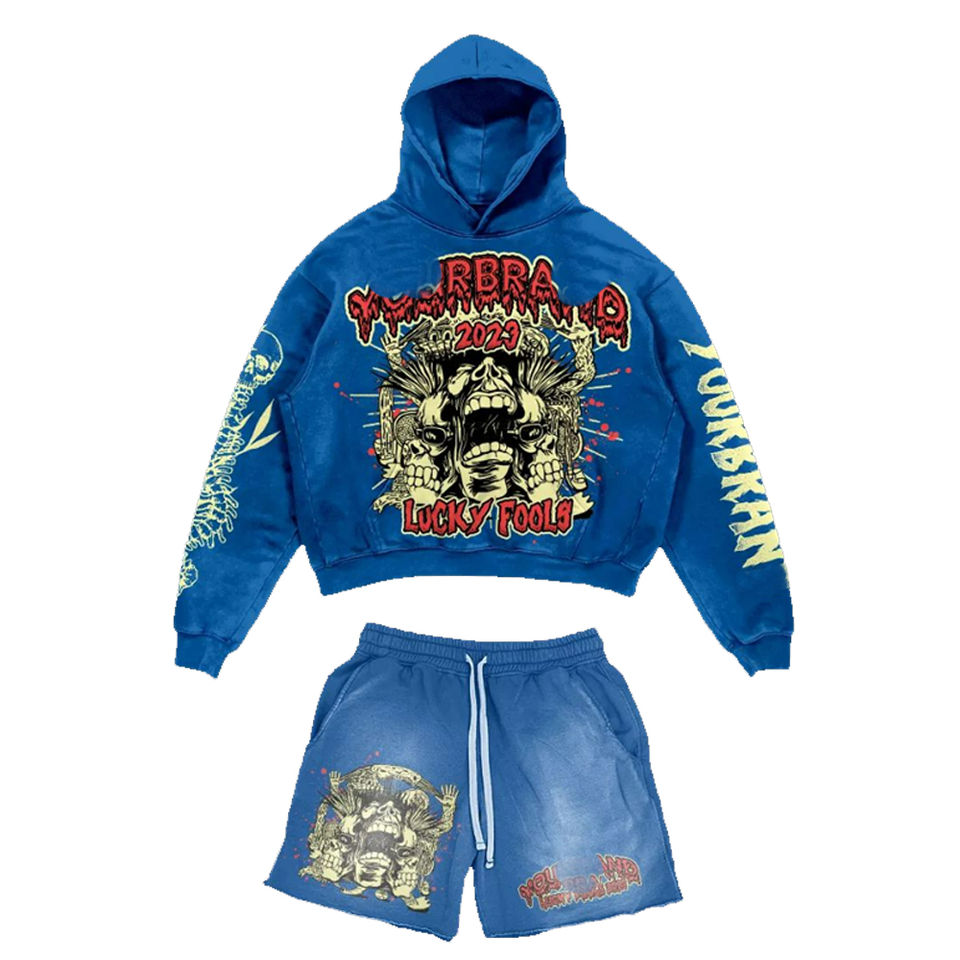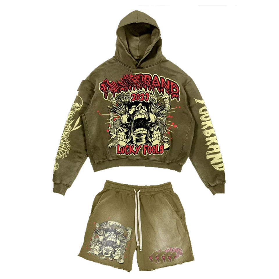 Ensemble sweat-shirt et short vintage pour homme, personnalisé, avec impression et broderie, coupe courte, poids lourd