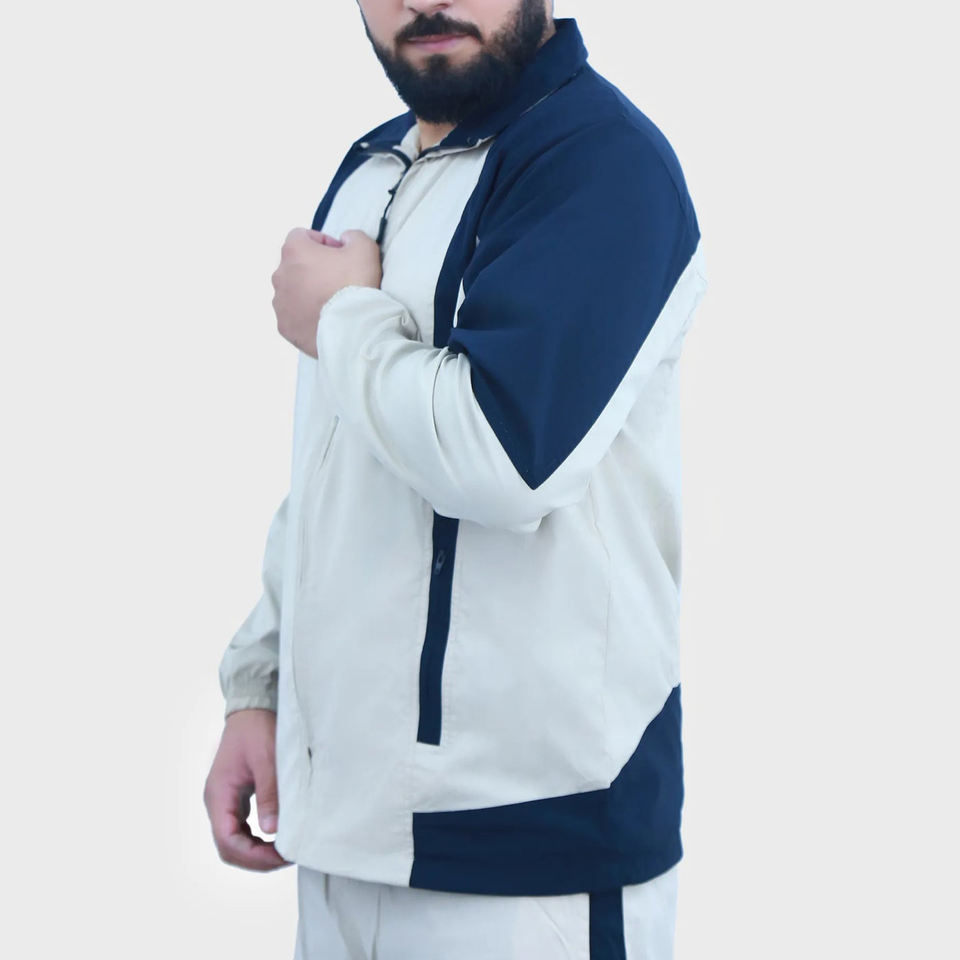 Ensemble de survêtement sportif épais personnalisé pour hommes – Veste coupe-vent en nylon à fermeture éclair intégrale et pantalon de jogging – Survêtement coupe-vent