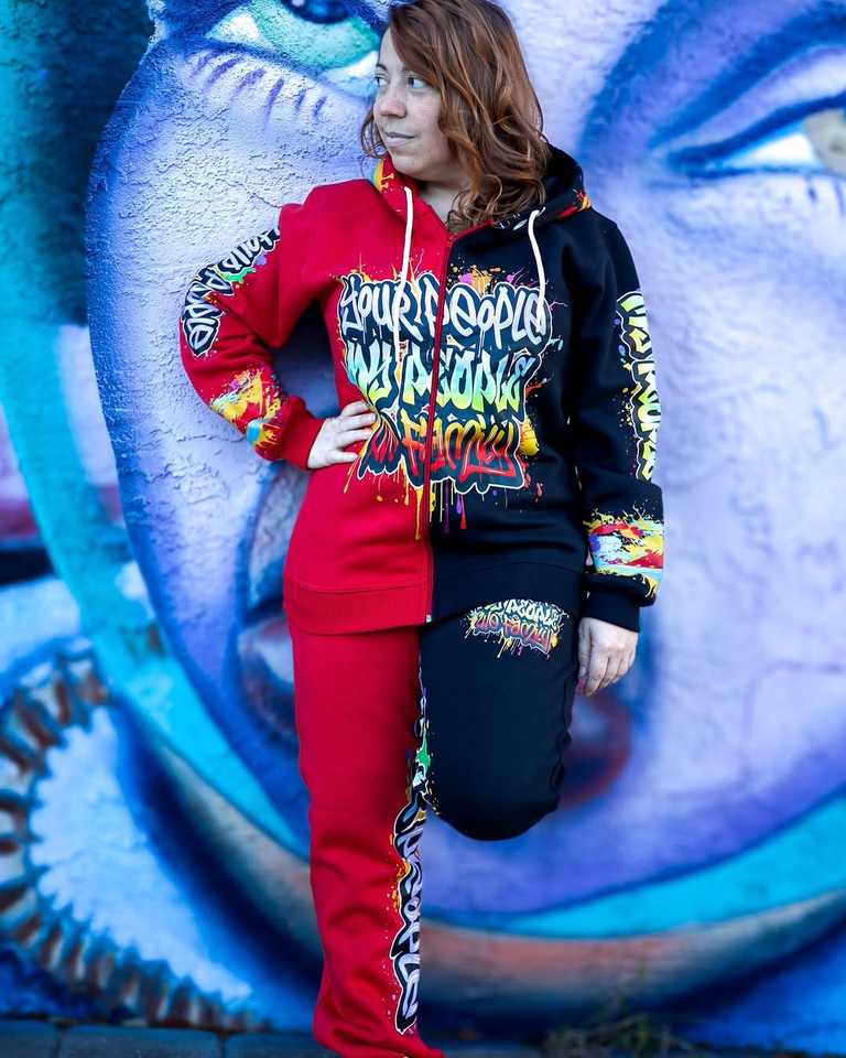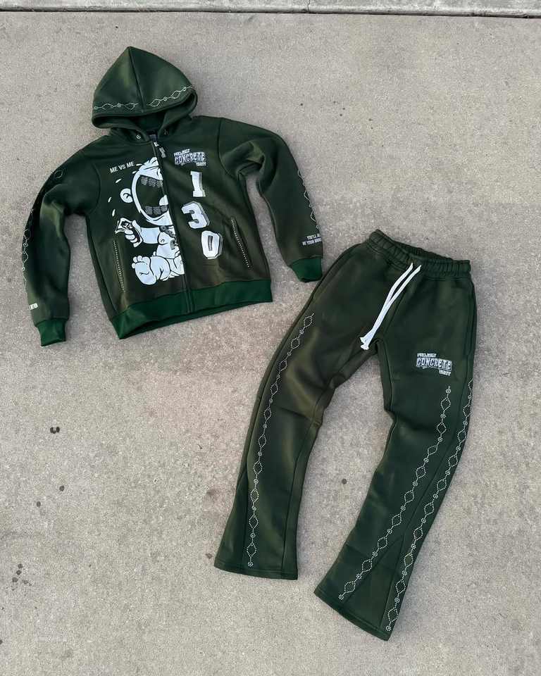 Ensemble deux pièces personnalisé d'un poids lourd Rhinestone multicolore sérigraphie survêtement à fermeture éclair survêtement