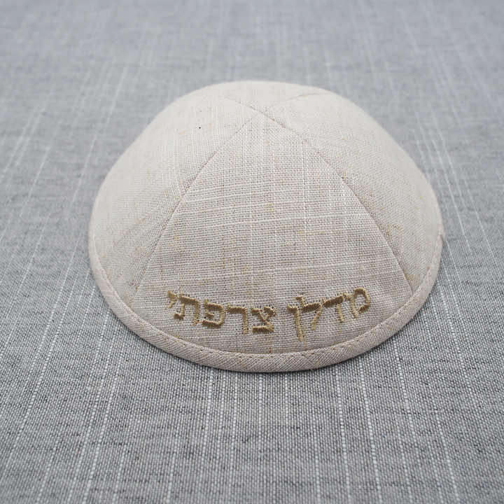 Kippa en lin brodé d'hébreu personnalisé, Ahava juif, Kippot personnalisable pour les mariages et Barbat Mitzvahs Cadeau juif Yarmulke