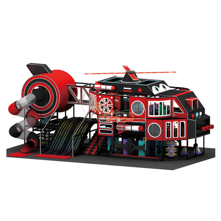 Aire de jeux intérieure sur le thème de l'hélicoptère personnalisée pour les enfants, équipement de jeu doux commercial avec toboggans et zones d'escalade