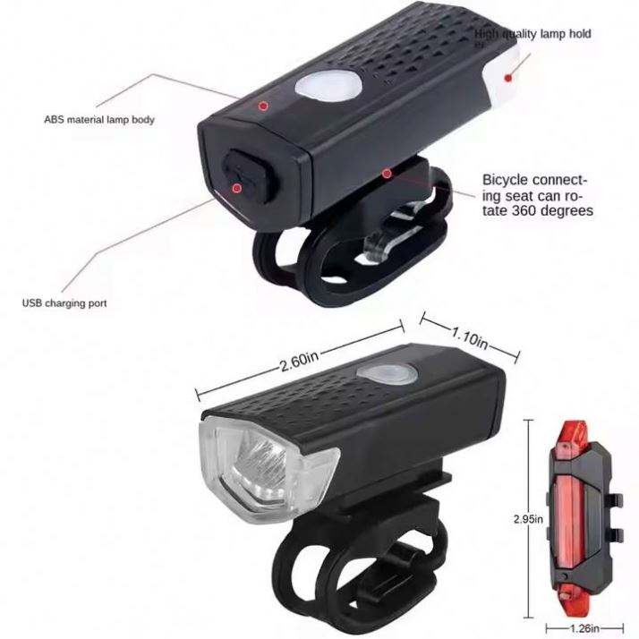 Lampe de vélo LED personnalisée haute luminosité, promotionnelle, étanche, rechargeable par USB, accessoires avec impression UV, en acier moderne