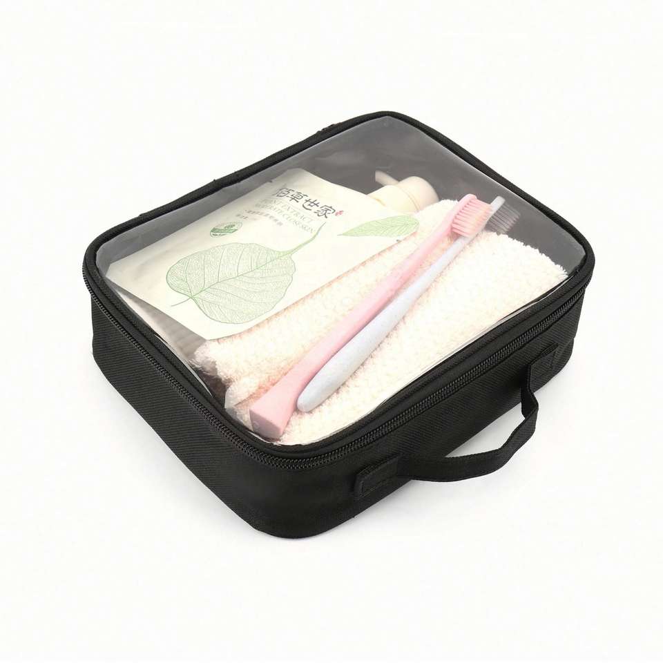 Sac de toilette de voyage personnalisé haute capacité, portable, étanche, transparent en PVC, format quart, pour cosmétiques et maquillage