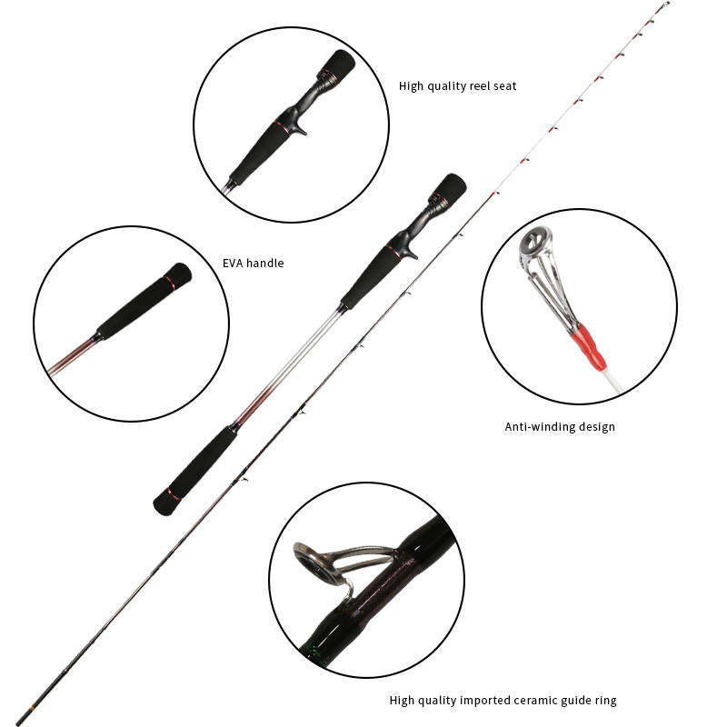 Canne à pêche Baitcasting en fibre de carbone à haute teneur personnalisée canne à pêche Tyraba solide poignée en EVA pour les espèces de carpe canne à pêche en rivière