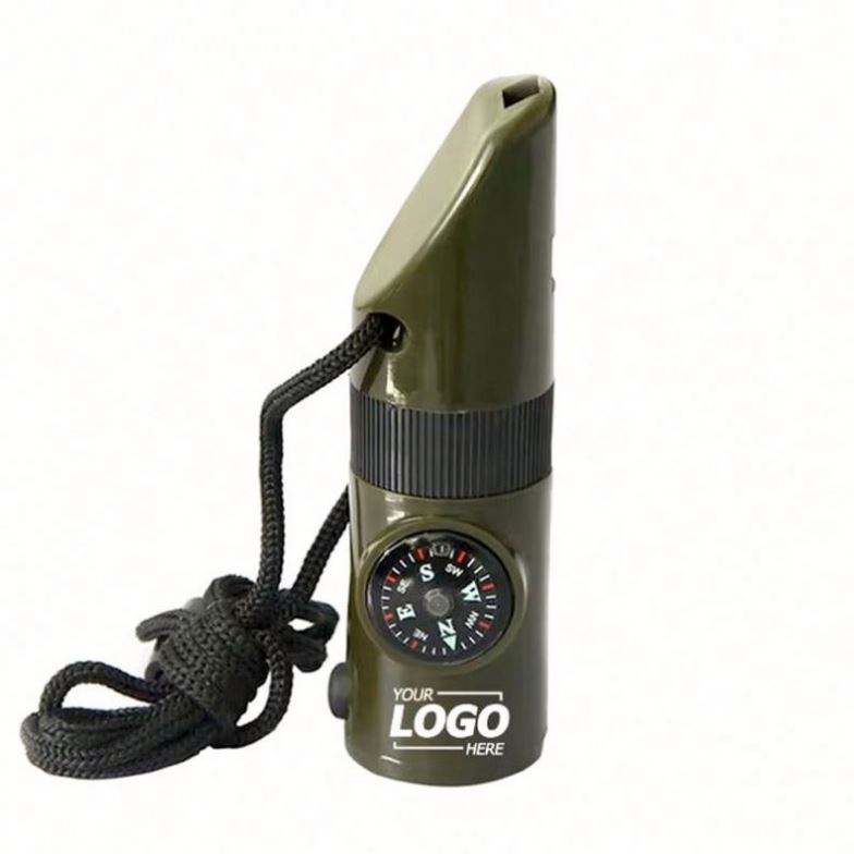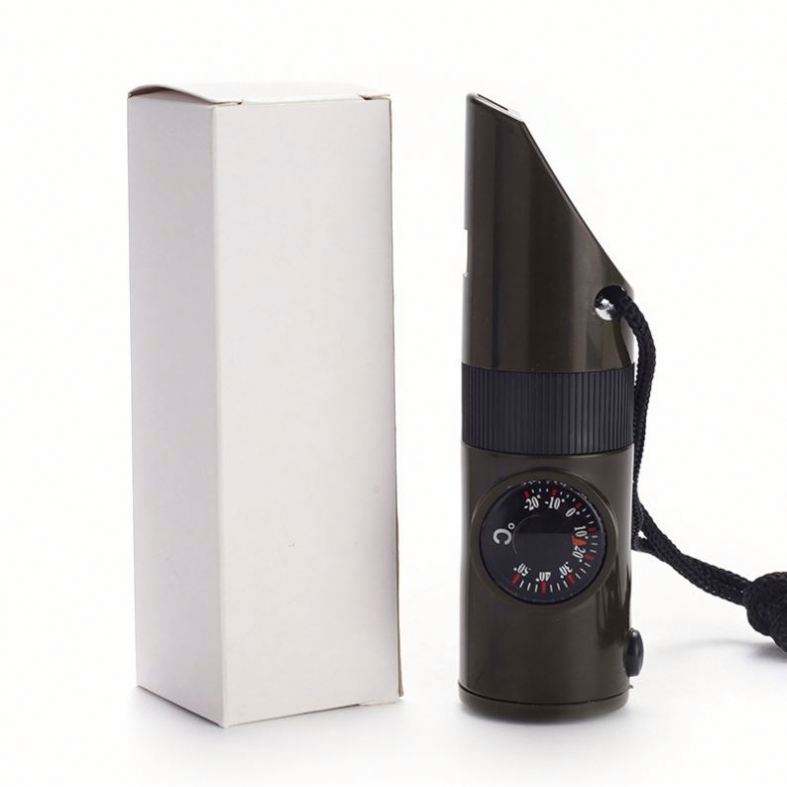 Custom High Decibel Waterproof Outdoor Survival Whistle with Compass LED Flashlight Reflector & Lanyard for Camping Spring