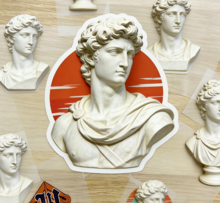 Autocollants DTF personnalisés haute définition pour impression sur vêtements (T-shirts) : Statue grecque classique David, transfert thermique, film PET lavable