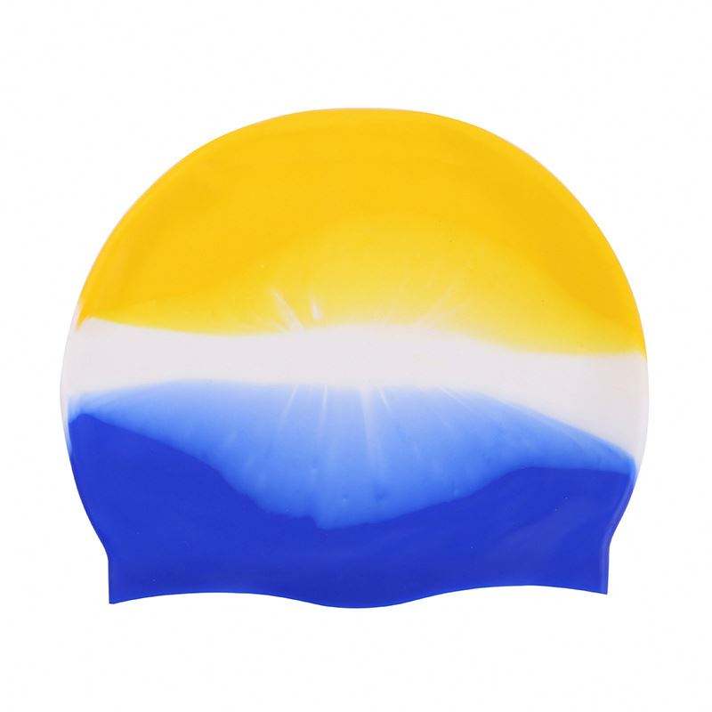 Bonnet de bain imprimé multicolore en silicone 21.5*18.5cm Accessoires de natation durables avec logo personnalisé pour une utilisation à la plage