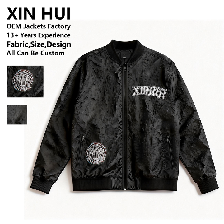 Blouson bomber streetwear pour homme, long et ample, en tissu froissé 3D teinté sur mesure, haut de gamme, pour l'hiver | Professionnel