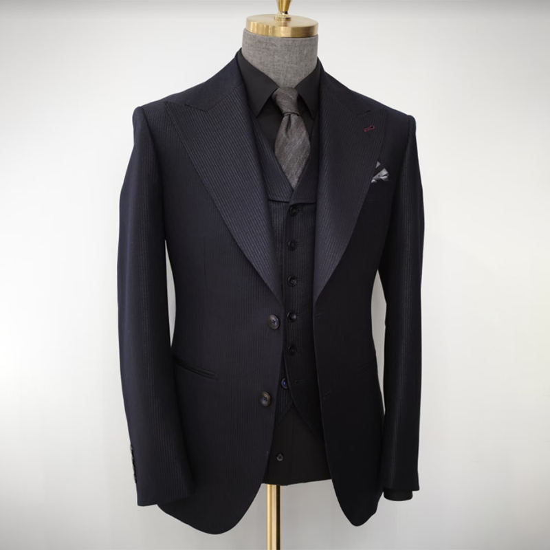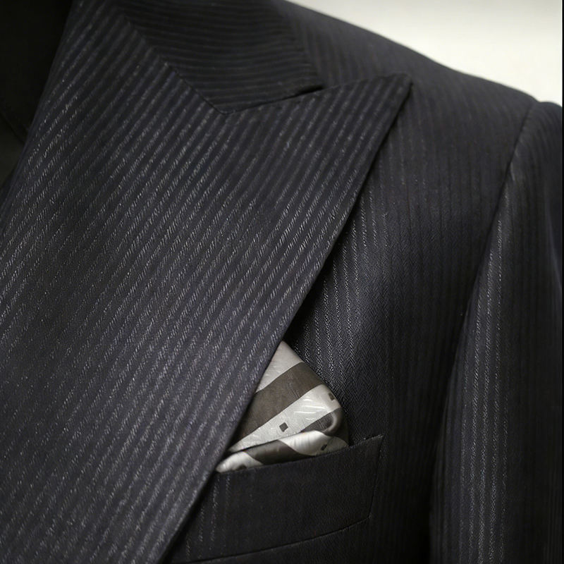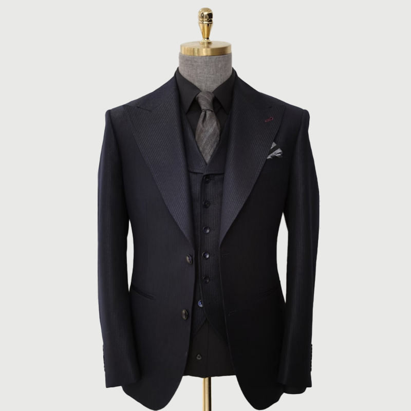 Veste de Costume Homme Haut de Gamme Bleu Marine à Revers Pointus Rayée en Laine – Tissu en Laine Premium Coupe Slim Blazer Formel d'Affaires