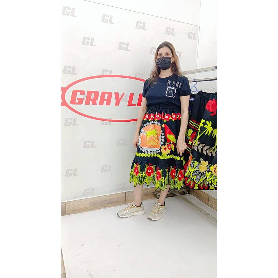 Techniques:Plissé, Teinture à vêtement, Teint clair, Brodé