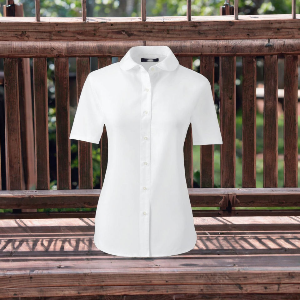 Personnalisé haute primaire maternelle filles uniformes scolaires moderne blanc Blouse col claudine manches courtes Design élégant pour