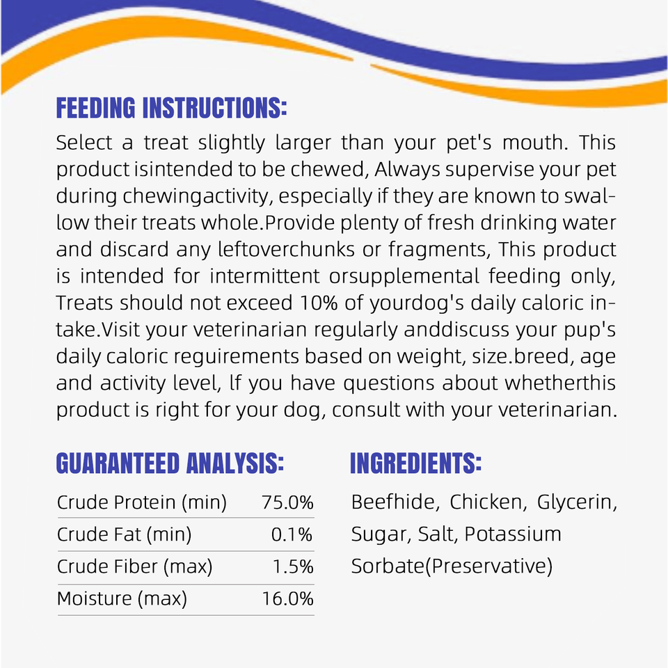 Ingrédient:Beefhide, Poulet, Glycérine, Sucre, Sel, Sorbate de Potassium