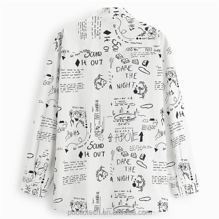 Custom High Quality 100% Cotton Camp Collar Long Sleeves Light Casual Full-width Printing Shirt for Men