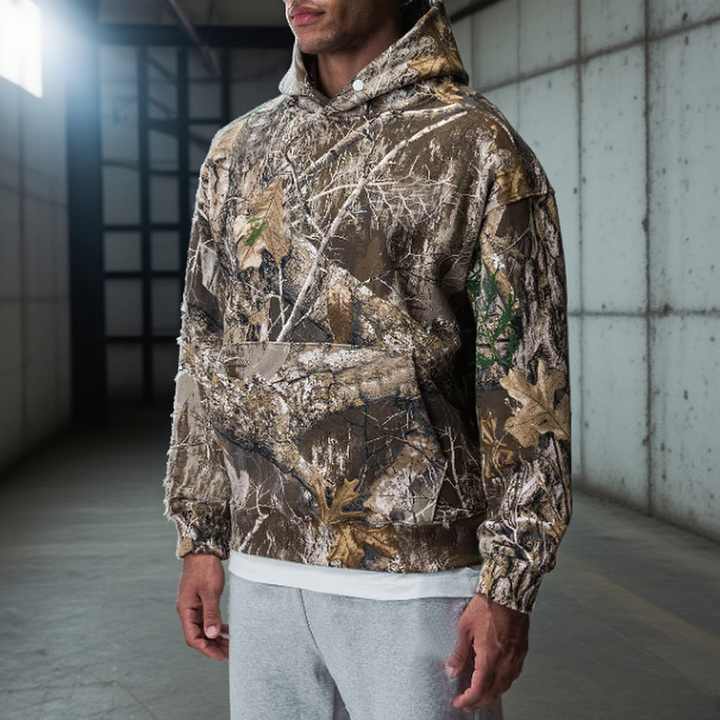 Sweat à capuche de chasse fonctionnel en coton 100% de haute qualité, imprimé motif arbre, camouflage de chasse en coton