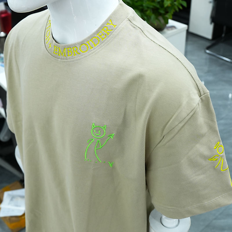 T-shirt en coton tricoté 100 % personnalisé de haute qualité avec broderie 3D en chenille, coupe oversize à épaules tombantes, respirant, pour hommes