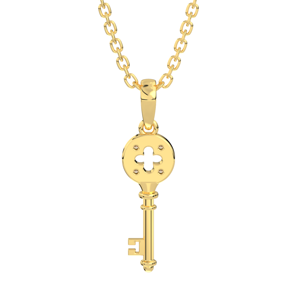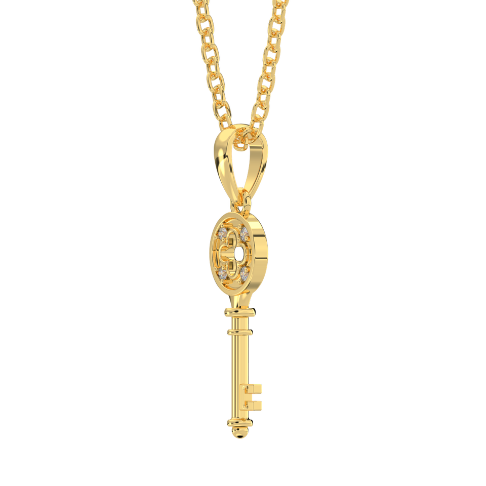Collier pendentif personnalisé de haute qualité en or jaune 10 carats en forme de clé CZ Zircon cadeau vintage taille brillant pour les femmes bijoux Calista