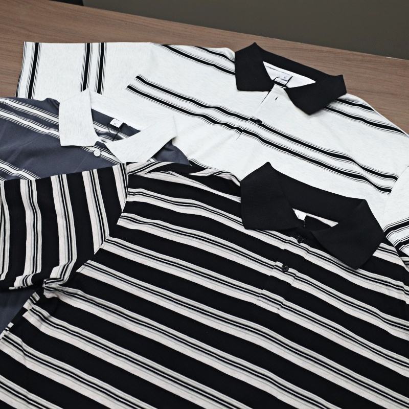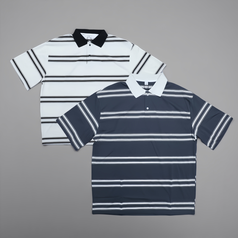 Chemises polo classiques à manches courtes boutonnées en coton et polyester mélangé de haute qualité 220 g/m², à rayures, pour hommes