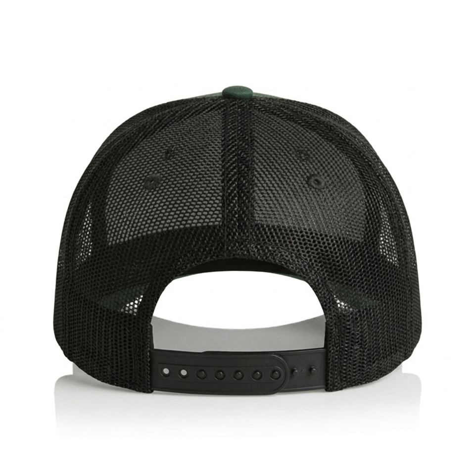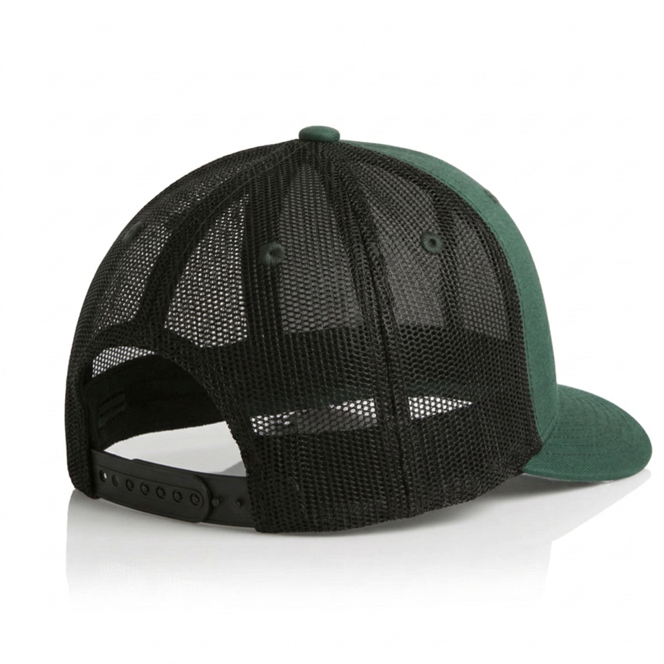 Casquette Trucker en Maille 5 Panneaux Personnalisée de Haute Qualité – Vert Foncé & Noir, Casquette de Baseball Ajustable à Fermeture Snapback pour Hommes et Femmes