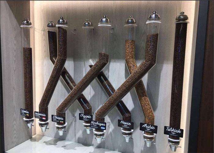 Silos de café de plexiglass avec le distributeur inoxydable de robinet/grain de café